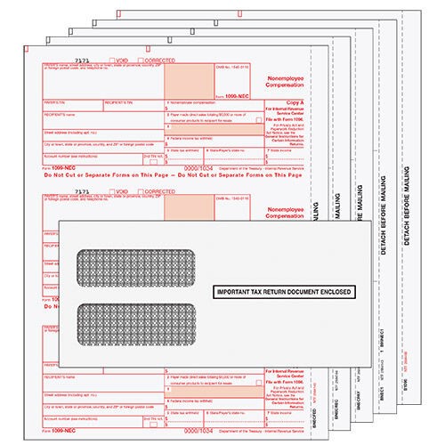 BUNDLE - Laser 1099-NEC (non-employee compensation) 5 part set w/envelopes